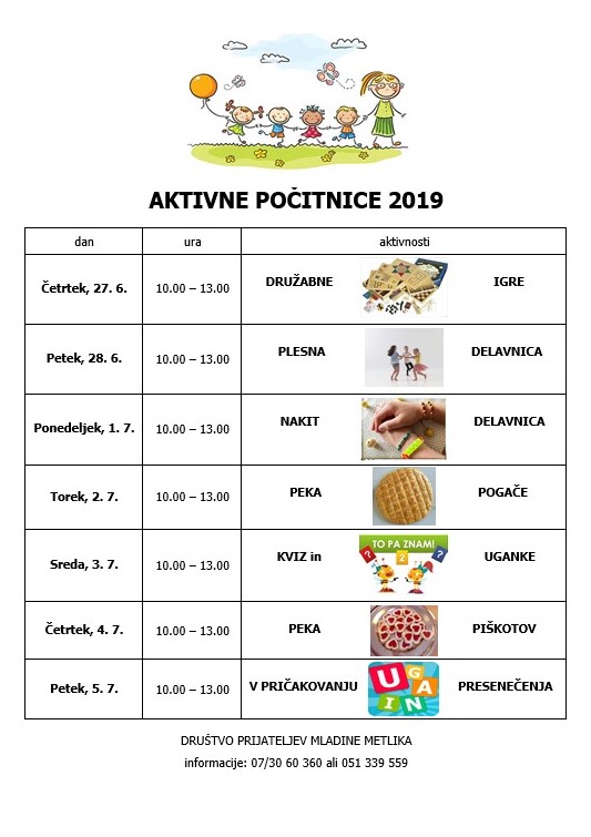 18.6.2019 - POČITNIŠKE AKTIVNOSTI SKOZI LETO 2019