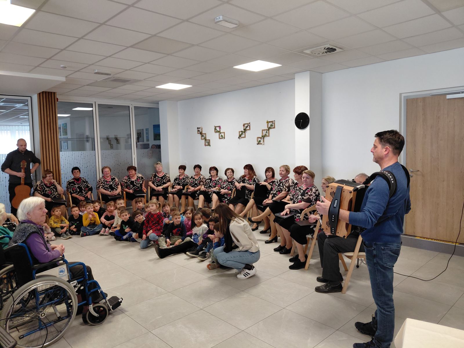 Tudi letos smo razveselili stanovalce Doma starejših občanov Metlika ob Dnevu žena in materinskem dnevu s prisrčno pomladno prireditvijo in s posebnimi spominskimi darilci, ki so jih za njih izdelali mladi člani Društva prijateljev mladine Metlika. V programu pa so nastopili otroci iz vrtca, Pevski zbor Društva upokojencev in znani glasbenik, harmonikar Andrej Bajuk, ki je s svojo harmoniko navdušil stanovalce, da so z otroki peli in zaplesali.